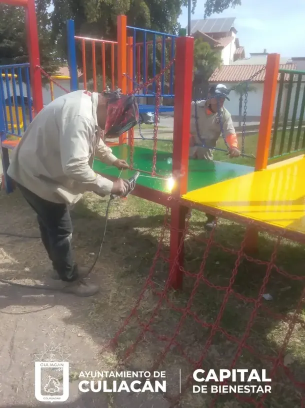 Las cuadrillas de la Secretaría de Obras y Servicios Públicos, acudieron al área para restaurar la pintura de los juegos infantiles, para soldar partes averiadas y a su vez, realizar acciones de limpieza con la finalidad de que las familias tengan un espacio digno para divertirse con sus hijos.