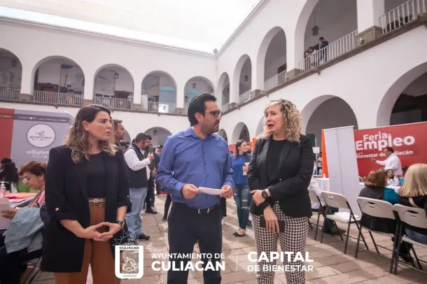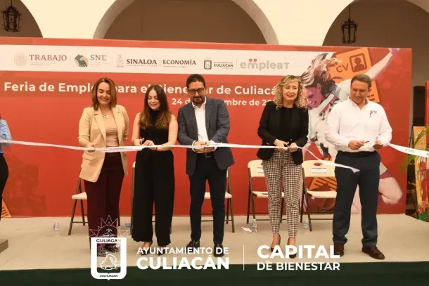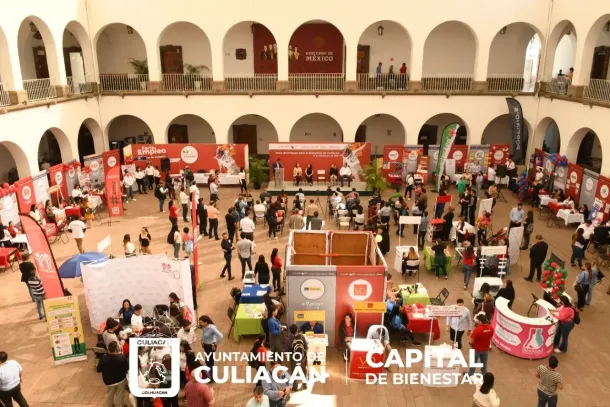 Culiacán, Sin., a 24 de noviembre de 2022.- Esta mañana se inauguró en el patio del Palacio Municipal la Feria del Empleo para el bienestar de Culiacán, misma que ofrece vacantes desde 5 mil hasta 25 mil pesos para todos los capitalinos, expresó el alcalde Juan de Dios Gámez Mendívil.