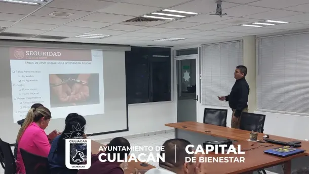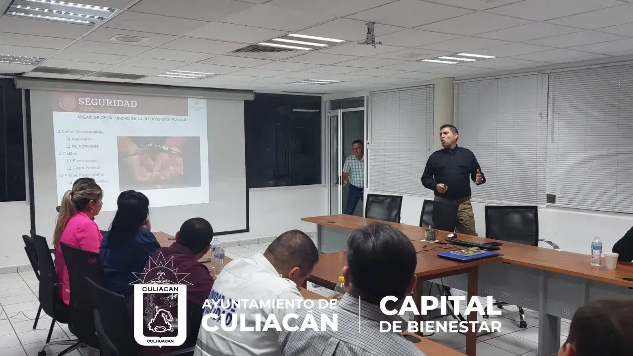 Culiacán, Sin., a 18 de enero de 2023.- A través de la mesa de trabajo denominada “Procedimiento para la Intervención Policial”, el secretario de Seguridad Pública y Tránsito Municipal, Sergio Antonio Leyva López, los directores de las Unidades Preventiva y de Vialidad y Tránsito, el Coordinador del Tribunal de Barandilla, sus jueces y los titulares de las áreas jurídicas de la SSPyTM, así como los instructores certificados con los que cuenta la dependencia de seguridad del municipio de Culiacán, homologaron los criterios y procedimientos para la intervención policial.