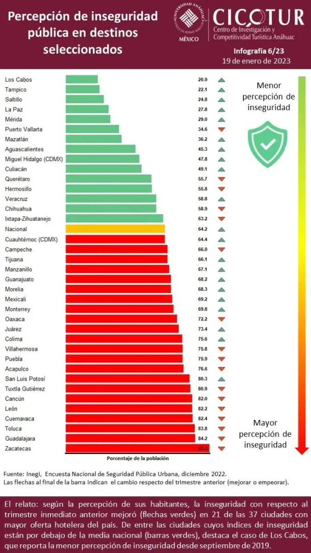Dicha revista publicada el 19 de enero de 2023 y que realizó el estudio con el cierre de datos del 2022, destaca que la percepción de la población es positiva respecto al entorno económico de los mercados, seguridad, de transporte aéreo e indicadores turísticos.