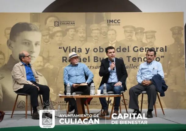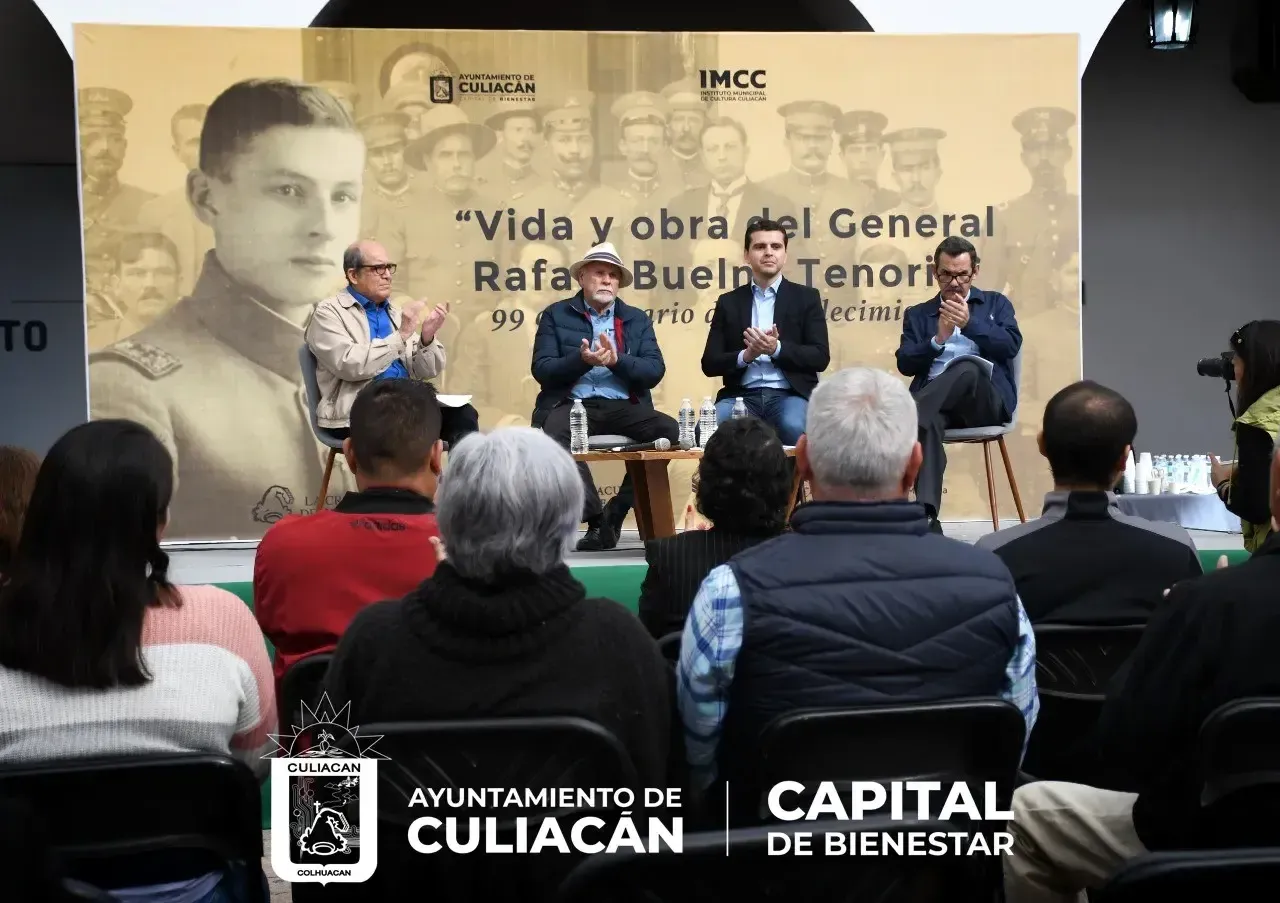 Culiacán, Sin., a 23 de enero de 2023. – En el Marco del 99 aniversario luctuoso de Rafael Buelna Tenorio (23 de mayo de 1890 – 23 de enero de 1924), el Granito de Oro, el más joven general de la Revolución, es considerado un joven polifacético, inteligente, ingenioso, líder, crítico, audaz, defensor de la libertad y la justicia, historiadores culiacanenses destacaron su enorme figura ante un público reunido en el patio central de Palacio Municipal de Culiacán.