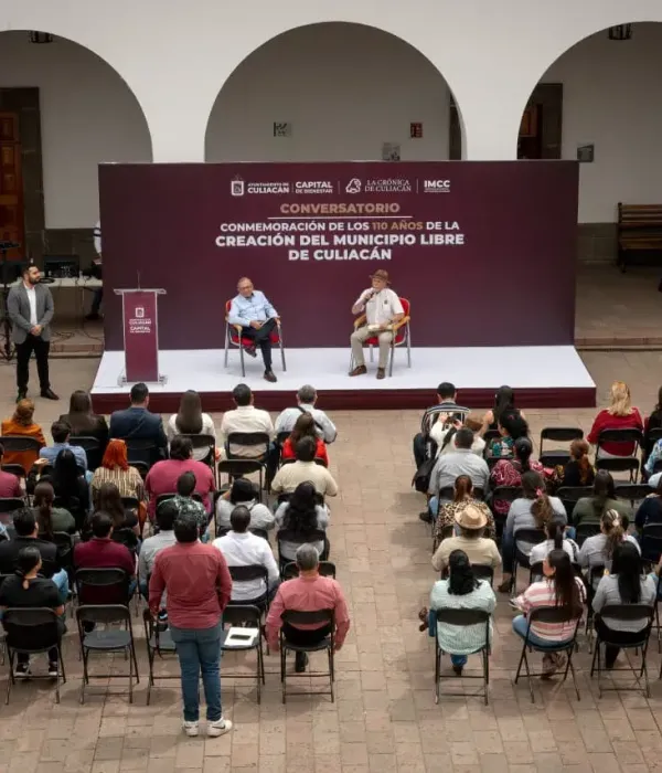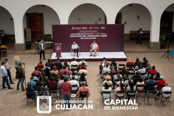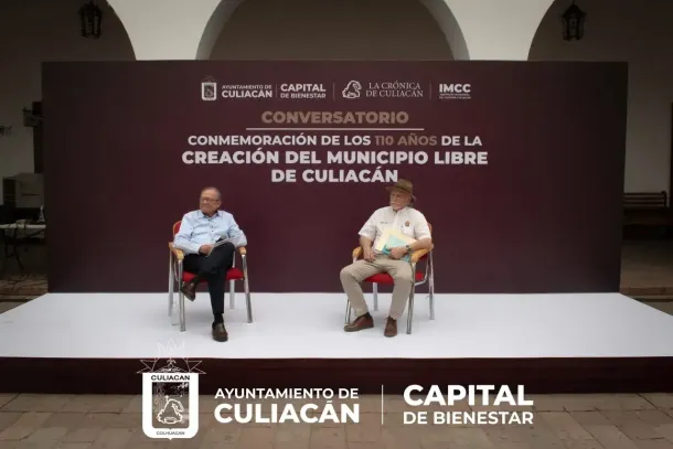 Culiacán, Sin., a 25 de marzo de 2025.- En el marco de la conmemoración del 110° aniversario de la creación del municipio libre de Culiacán, se llevó a cabo un conversatorio con los cronistas Jaime Félix Pico y Francisco Padilla Beltrán. Durante el evento, se destacó la relevancia de este hecho histórico, que otorgó independencia respecto a otros poderes y soberanía en la administración de los recursos públicos.