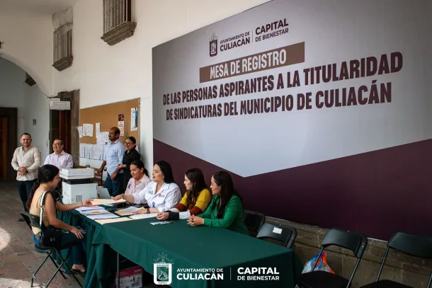 Culiacán, Sinaloa; a 10 de marzo de 2026.- El Ayuntamiento de Culiacán instaló la mesa de recepción para el registro de aspirantes a síndicos y síndicas municipales, proceso en el que hasta el momento se han presentado 32 personas interesadas en participar en la contienda correspondiente a las 16 sindicaturas del municipio.