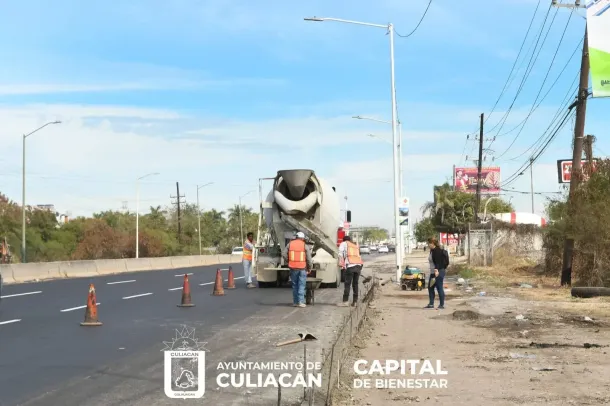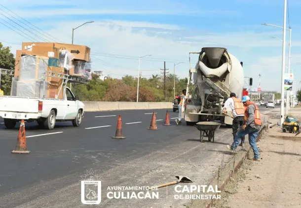 Culiacán, Sin., a 30 de enero de 2023. – La transformación del bulevar Jesús Kumate, una de las vialidades que da la bienvenida a la ciudad, avanza con el proyecto de reencarpetado ya concluido y actualmente con la construcción de camellones y bordillos para delimitar la carpeta asfáltica.