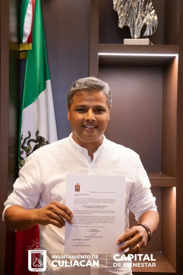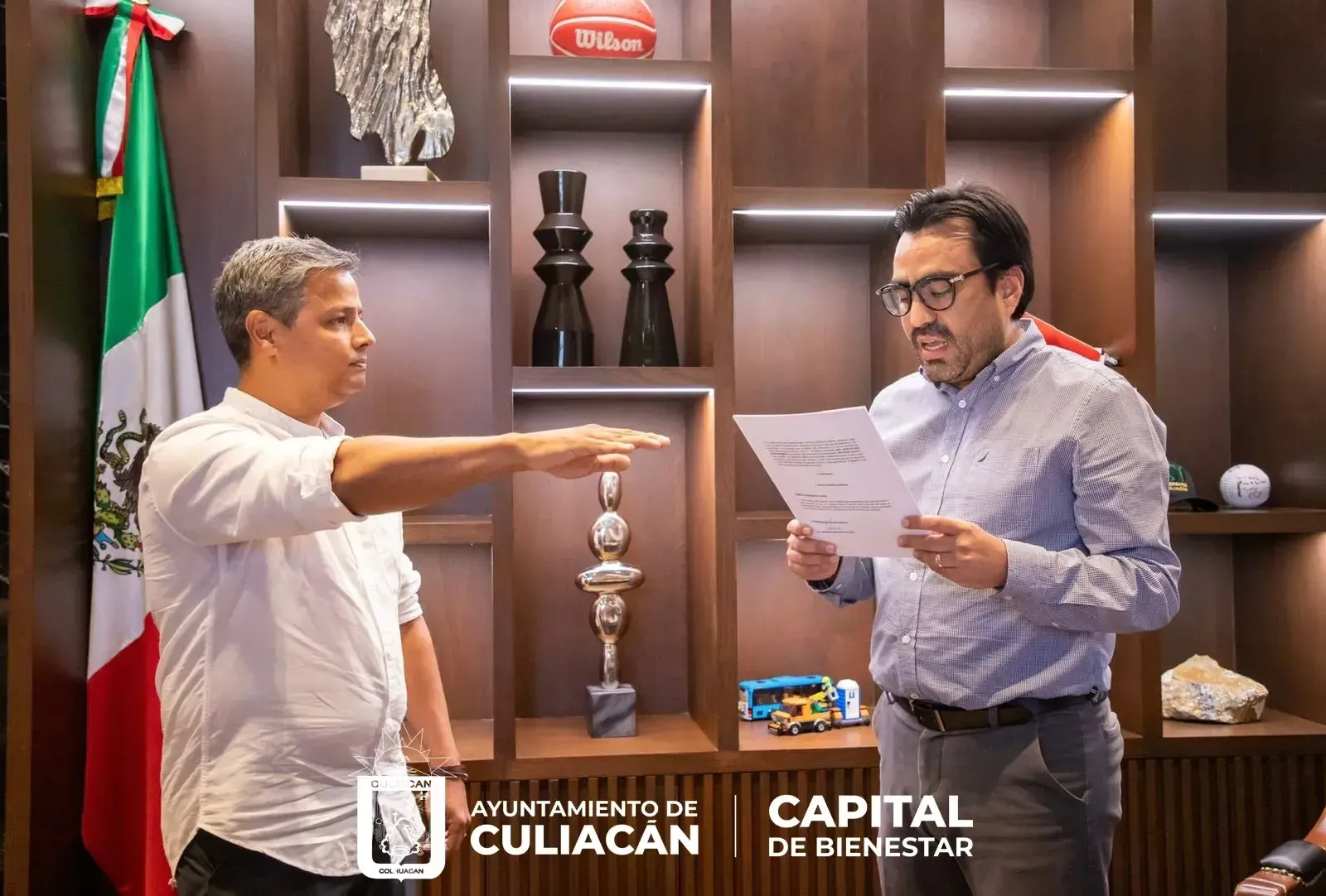 Culiacán, Sin., a 10 de octubre de 2022.- Bajo el compromiso de trabajar en la aplicación de estrategias de ordenamiento, zonificación y planeación del crecimiento de la ciudad, Miguel Aispuro Espinoza, rindió protesta de ley ante el alcalde Juan de Dios Gámez Mendívil, como titular de la Secretaría de Desarrollo Urbano Sustentable de Culiacán.