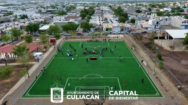 El referente deportivo está compuesto por pasto sintético, barda perimetral, alumbrado público y porterías totalmente nuevas.