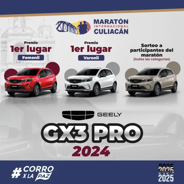 Culiacán, Sin., a 14 de enero de 2025.- Con tres automóviles como premios principales, el domingo 19 de enero, se realizará el Maratón Internacional de Culiacán 2025, bajo el lema #CORROXLAPAZ.