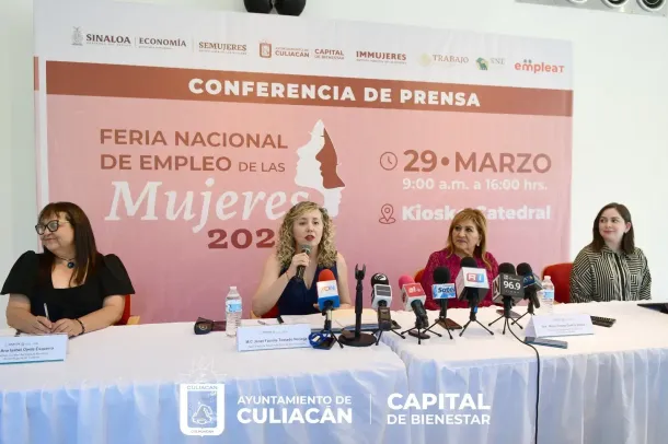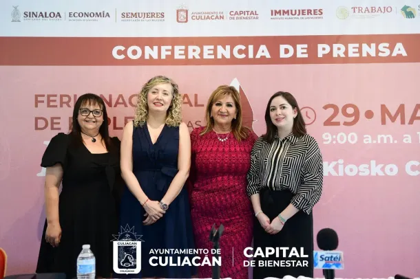 Durante la rueda de prensa, estuvieron presentes también la directora del Servicio Estatal del Empleo y Productividad, Abril Estefanía Vega Araiza; la directora de Immujeres, Ana Isabel Ojeda Esquerra; y el director de Empleo del Municipio, Fernando Díaz Favela.