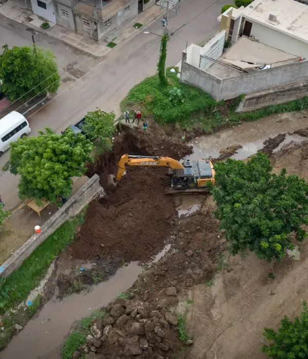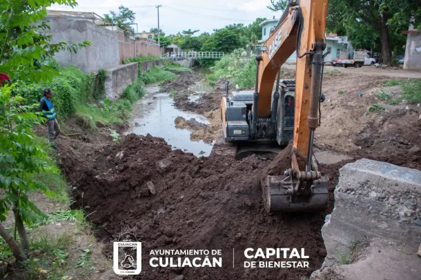 Culiacán, Sin., a 10 de septiembre de 2025.- Tras el colapso de un muro de contención de concreto en el arroyo de la colonia 5 de febrero, la Secretaría de Obras y Servicios Públicos del Ayuntamiento de Culiacán inició la construcción de un nuevo tramo para proteger a las viviendas y a los vecinos de la zona.