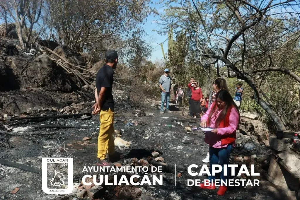 Culiacán Sinaloa, 14 febrero 2023.- Personal del área de trabajo social del Sistema DIF Bienestar Culiacán, visitó esta mañana a la familia Salas Sánchez, quien lamentablemente perdió su vivienda la noche del lunes 13 de febrero a causa de un incendio.