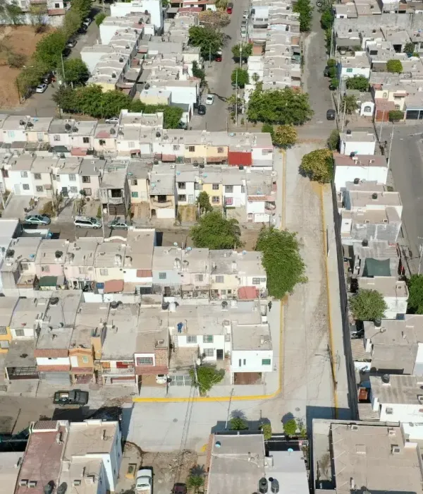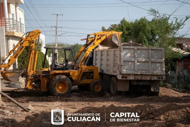 Calle Olivos, en el tramo comprendido entre las calles Bebedero y Ladrilleras, de la colonia Girasoles; dónde se continúa trabajando en el cuerpo del