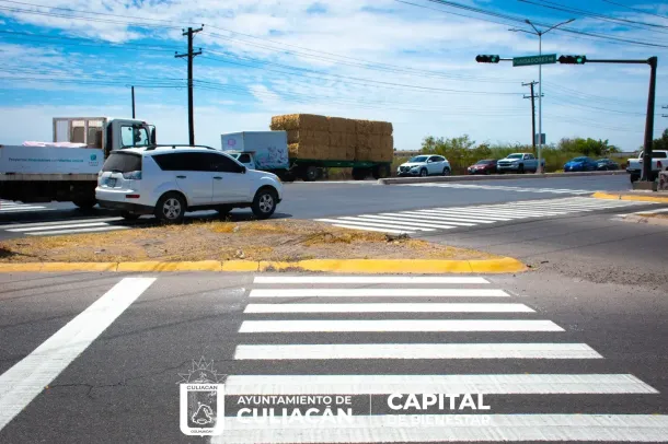 Culiacán, Sin., a 25 de mayo de 2023.– Dando seguimiento a la estrategia de que Culiacán cuente con una óptima movilidad en cada una de sus vialidades, dos cruces del bulevar Jesús Kumate se suman al pintado de los denominados pasos cebras, estos ubicados en Canal 7 y bulevar Las Moras.