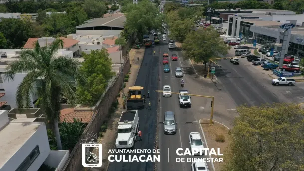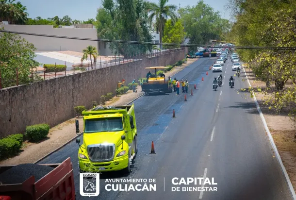 Culiacán, Sin., a 24 de mayo de 2023.- El mantenimiento de la infraestructura vial avanza con obras de bacheo y reencarpetado en los diversos bulevares, avenidas y calles de la capital sinaloense, esto en seguimiento a la estrategia trazada por la Secretaría de Obras y Servicios Públicos.