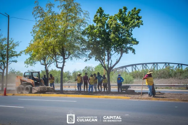 Culiacán, Sinaloa; a 15 de abril de 2026.- El Ayuntamiento de Culiacán, a través del área de Parques y Jardines, lleva a cabo trabajos de rehabilitación en el camellón central del bulevar José Limón, en el tramo comprendido desde la glorieta Cuauhtémoc, conocida como “La Canasta”, hasta el bulevar República de Brasil.