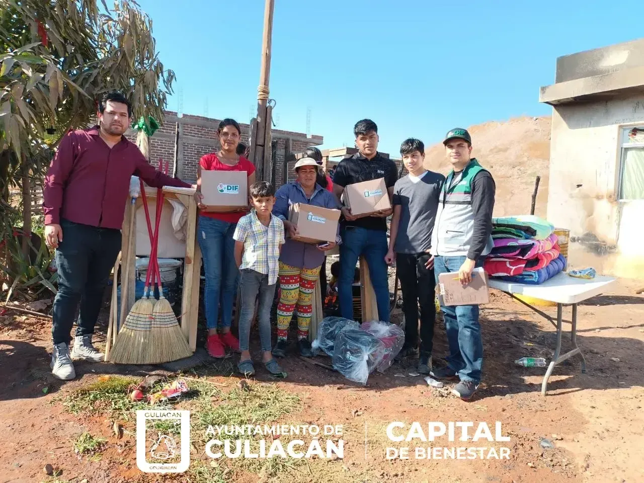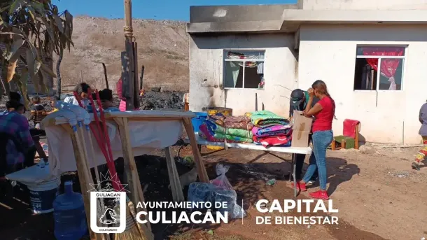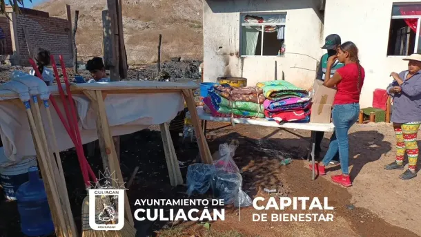 Culiacán, Sin., 26 diciembre 2022.- El Sistema DIF Bienestar Culiacán, entregó la tarde de este lunes, despensas, catres, colchonetas, cobijas y artículos de limpieza, a tres familias de la colonia Dos Oros, perteneciente a la Ampliación Bicentenario, luego de que un incendio, derivado de un corto circuito, acabara con sus hogares.
