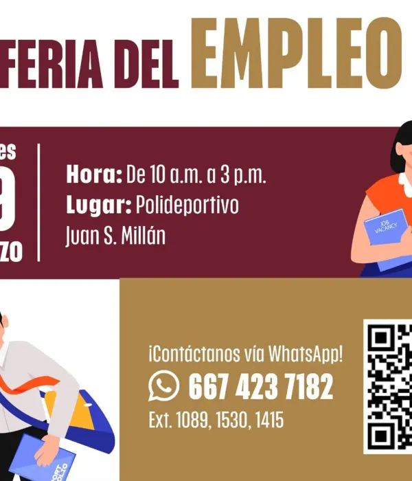 Culiacán, Sinaloa; 13 de marzo de 2026.- Con el objetivo de impulsar el desarrollo económico regional y fortalecer la vinculación laboral, el Ayuntamiento de Culiacán, en coordinación con el Servicio Nacional del Empleo (SNE), invita a la ciudadanía a asistir a la próxima Gran Feria de Empleo.