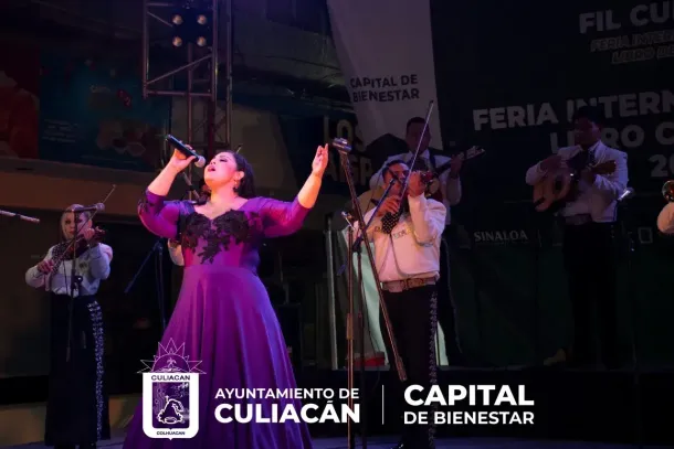 Culiacán, Sin., a 13 de diciembre de 2022.- Una noche mágica fue la que brindaron Nadia Yuriar y el Mariachi Imperial y la agrupación Clave de Sol al público culiacanense que acudió a disfrutar de su espectacular concierto como parte de la Feria Internacional del Libro Culiacán 2022.