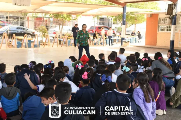 Culiacán, Sin., a 17 de febrero de 2023. – A través del fomento a la lectura y las artes, el Instituto Municipal de Cultura Culiacán acudió a la primaria Rita López Zazueta a incentivar a los infantes el hábito en esta disciplina, esto como parte del programa Construyamos la Paz.