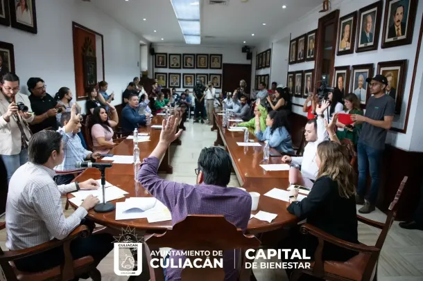 Culiacán, Sin., a 30 de junio de 2023.- En Sesión Ordinaria de Cabildo se aprobaron por unanimidad los Dictámenes de diversas comisiones, entre las que destacan las de Urbanismo, Ecología y Obras Públicas, Trabajo y Previsión Social y las Comisiones Unidas de Hacienda y de Rastros, Mercados y Centrales de Abasto.