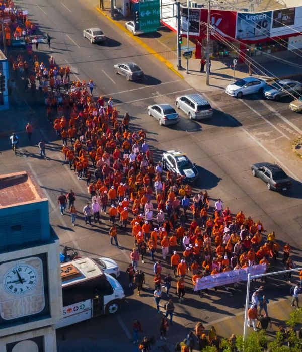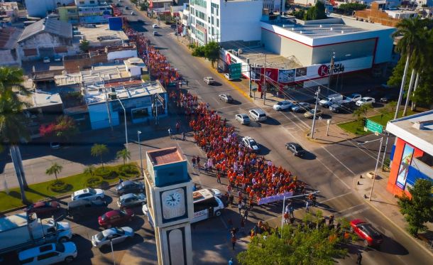 El evento se llevó a cabo por la avenida principal de Culiacán desde La Lomita hasta la plazuela Álvaro Obregón, donde la multitud marchó vestida en un llamativo color naranja, simbolizando la lucha y resistencia contra la violencia de género.