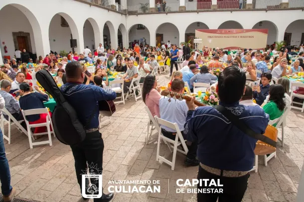 Con un platillo tradicional sinaloense, los asistentes, en su mayoría, maestros jubilados, disfrutaron de una celebración al son del mariachi y la rifa de algunos obsequios, así como las felicitaciones de diversas autoridades.
