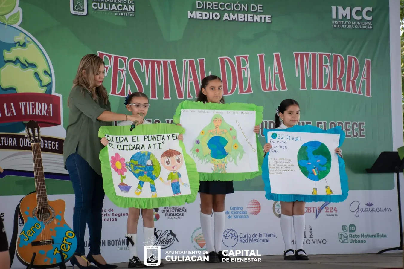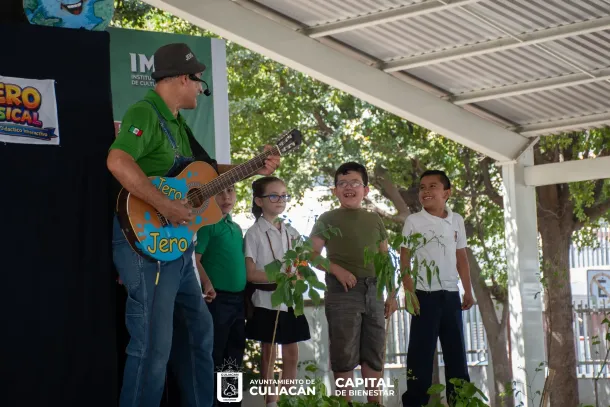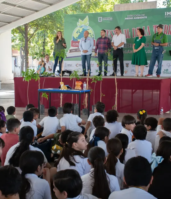 Durante su intervención, el director del Instituto Municipal de Cultura Culiacán, Adolfo Plata Guzmán, exhortó a los niños a comprometerse con el cuidado del planeta a través de acciones como el reciclaje y la sustentabilidad. Asimismo, transmitió un saludo del alcalde Juan de Dios Gámez Mendíbil y destacó la importancia de mantener la Tierra limpia y en buenas condiciones, al considerarla la casa de todos.