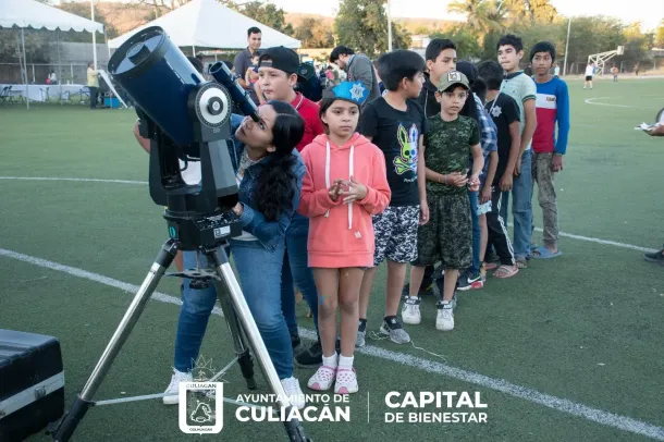 Culiacán, Sin., a 24 de marzo de 2023.– Un viernes lleno de diversión y aprendizaje vivieron niños, jóvenes y adultos en el evento denominado "Una Tarde Astronómica, Visitando a las Estrellas", organizado por el Instituto Municipal de la Juventud.