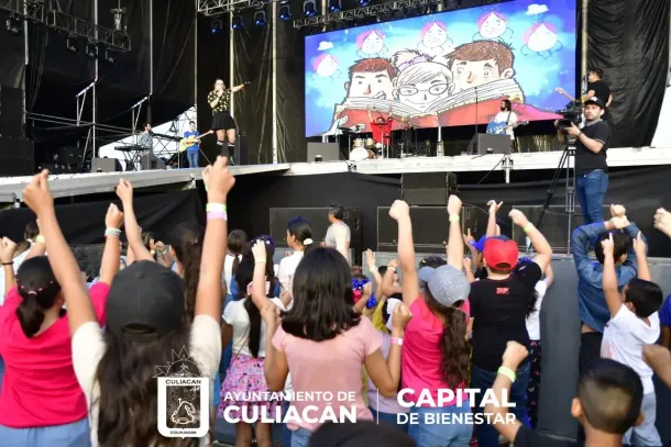 La banda de rock sinaloense puso a corear a las familias con melodías como "Agujetas de color de rosa", "La Bamba", y, por si fuera poco, la vocalista Elisa Carreón motivó a los pequeños para jugar y entonar tradicionales juegos como "La víbora de la mar", "Estatuas de marfil", "Campanita de oro"; ahí se vivió una tremenda fiesta infantil.