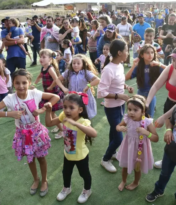 Las niñas, niños y padres de familia, no dudaron en ponerse a bailar y festejar esta fecha tan especial, y qué mejor que hacerlo frente al imponente escenario que se igualaba a eventos de talla internacional.