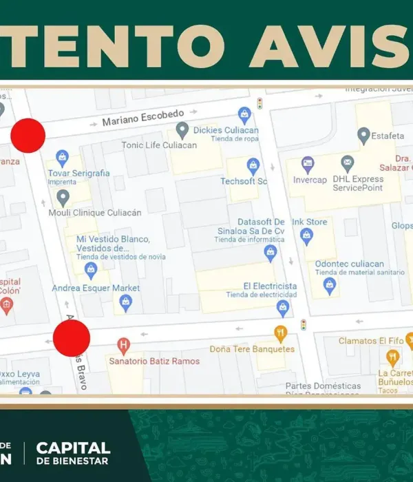 Culiacán, Sin., a 01 de junio de 2023.- Debido a labores de rehabilitación, los cruces de la av. Nicolás Bravo con la calle Escobedo y la calle Colón, permanecerán cerrados🚧👷🏻‍♂️