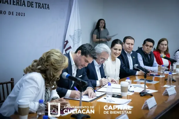 Culiacán, Sin., a 28 de febrero de 2023.- Tras la instalación de la Comisión Interinstitucional para Protección de Víctimas en Materia de Trata, presidida esta mañana por el gobernador del estado, Rubén Rocha Moya, el alcalde Juan de Dios Gámez Mendívil rindió protesta como integrante de la misma.