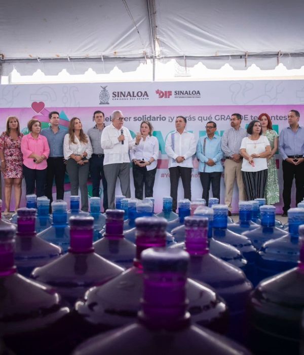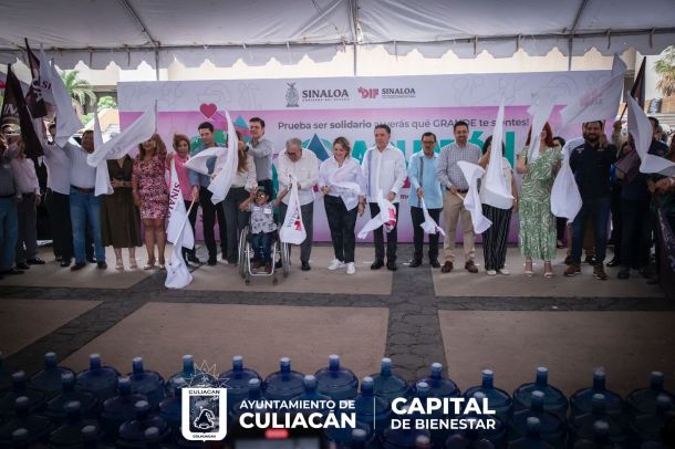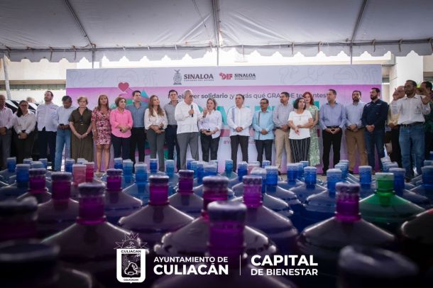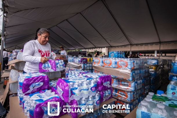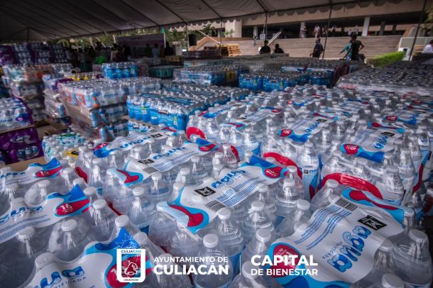Por su parte, el alcalde José Ernesto Peñuelas Castellanos hizo entrega de 61 mil 289 litros de agua potable embotellada para que sean repartidas a las zonas que más lo requieren en Sinaloa.