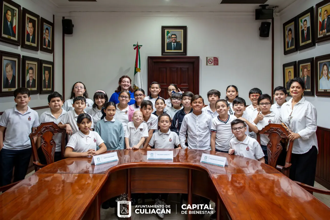 Culiacán, Sin., 18 de noviembre de 2025.- Como parte del programa de la Dirección de Educación “Conoce tu Ayuntamiento”, alumnos y alumnas de la Escuela Primaria Manuel Ávila Camacho realizaron una visita guiada al Palacio Municipal.