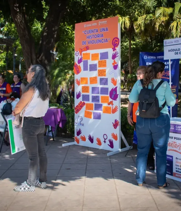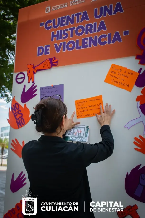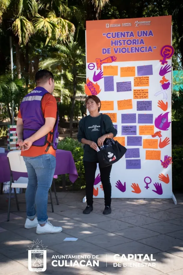 Culiacán Sin a 29 de noviembre de 2023.- En el marco de los 16 Días de Activismo en contra de la Violencia hacia la Mujer, el Consejo Municipal para Prevenir y Atender la Violencia Familiar (COMPAVIF) llevó a cabo la actividad "Cuenta tu historia de violencia" en el Parque Revolución.