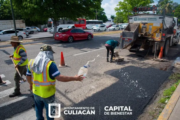 Por su parte, otra de las cuadrillas fue desplegada para realizar la restauración de algunos tramos del bulevar Pedro Infante a través del bacheo, garantizado un desplazamiento más seguro para los automovilistas.