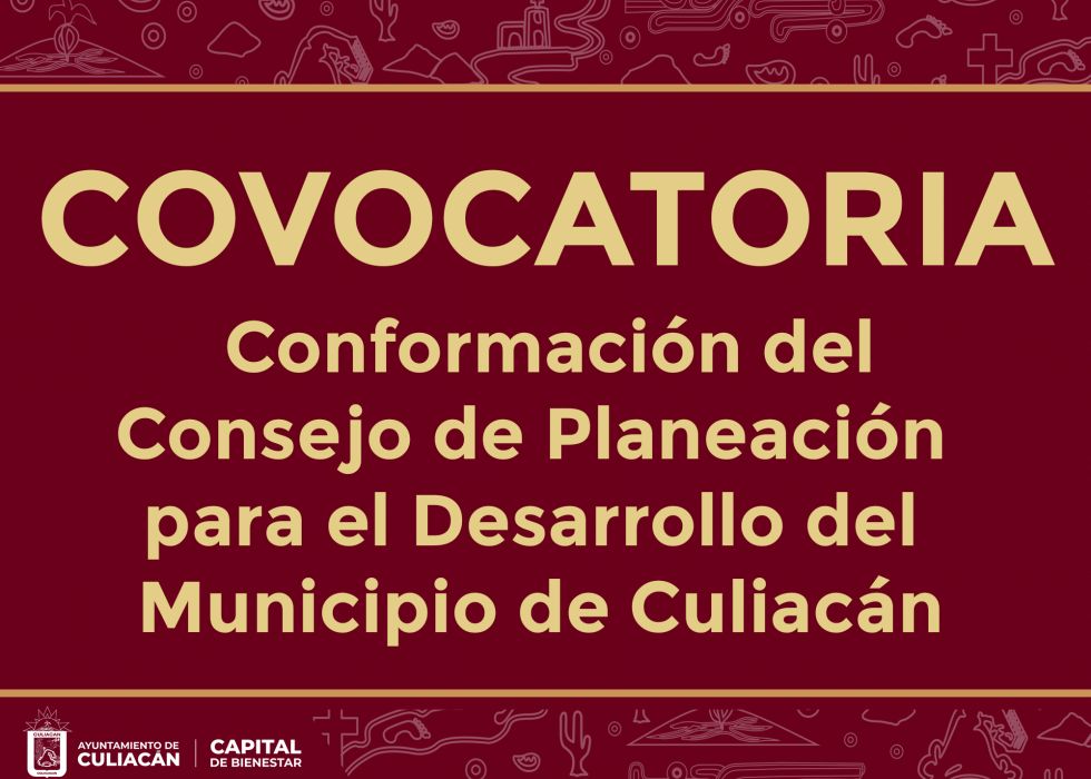 Culiacán, Sin., a 20 de enero de 2025.- El Ayuntamiento del Municipio de Culiacán, Sin. convoca a los sectores público, social y privado; a los pueblos y comunidades indígenas establecidas en el Municipio de Culiacán, Sinaloa; a las distintas organizaciones representativas de los sectores obreros, campesinos y grupos populares; a las instituciones académicas, profesionales, de investigación y demás sectores interesados a postularse para formar parte del Consejo de Planeación para el Desarrollo del Municipio de Culiacán, Sinaloa (COPLADEM);  órgano de participación ciudadana y consulta, auxiliar del Ayuntamiento en las funciones relativas a la planeación del desarrollo.