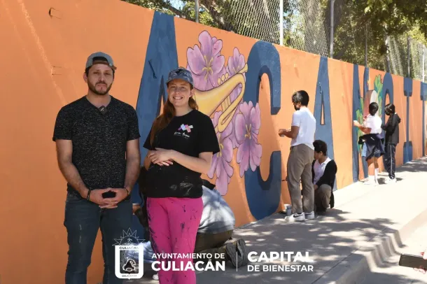 Mixtle Gaxiola y Sarah Gaxiola son los artistas que arrancaron con el proyecto para embellecer la barda del centro educativo en colaboración con Impulsa.