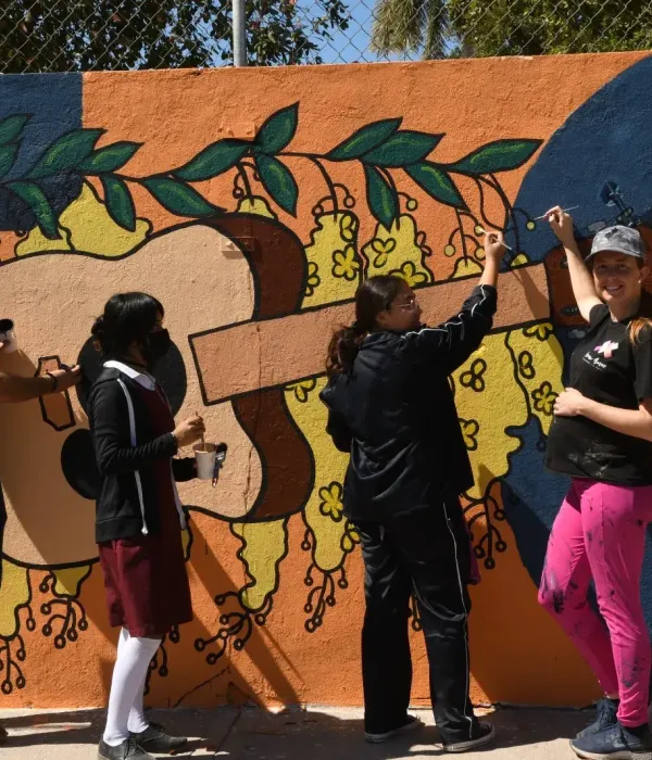 Culiacán, Sin., a 22 de febrero de 2023.– Plasmado como un proyecto cultural en el que intervienen estudiantes, asociaciones civiles y el Ayuntamiento de Culiacán, es como se plasma el mural sobre la barda de la secundaria de Culiacancito, espacio que se inspira en la identidad musical de la zona a través de instrumentos y árboles coloridos.