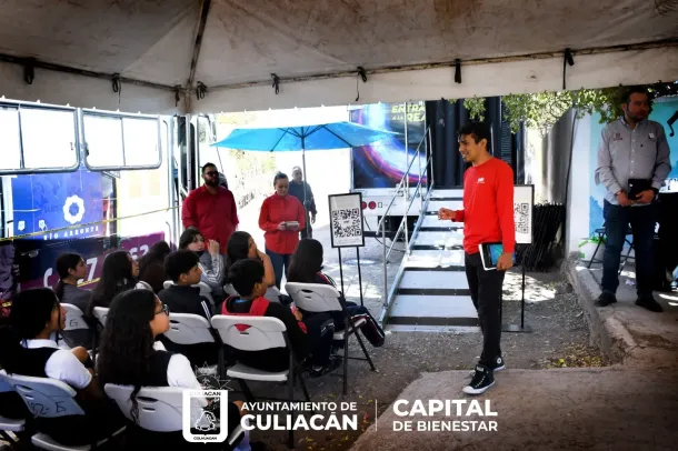 En el caso de la experiencia MIA, “La nueva realidad”, alumnos de la primaria Alejandro García Tyler y de la secundaria Gabriel Leyva Solano, respondieron una encuesta para generar estadística en torno a las adicciones y posteriormente disfrutaron de las actividades sensoriales del tráiler interactivo.