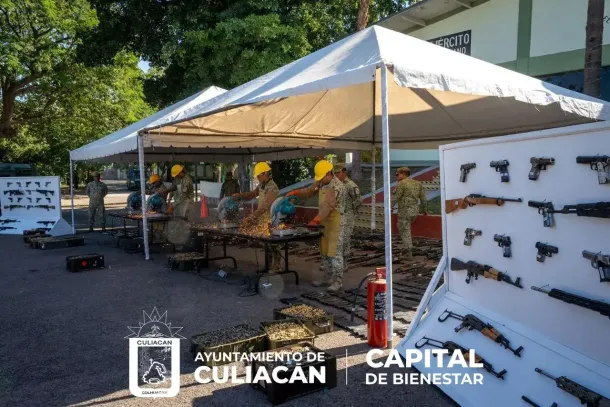 Así lo informó el alcalde de Culiacán, Juan de Dios Gámez Mendívil, durante una entrevista con medios de comunicación en el marco de la ceremonia de destrucción de armamento realizada en la Novena Zona Militar, donde fueron inhabilitadas 922 armas, 316 cargadores y 190 mil 446 municiones de distintos calibres.