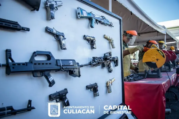 Durante el acto, Alfredo Salgado Vargas, comandante de la Novena Zona Militar, detalló que la destrucción del armamento decomisado corresponde a un total de 297 armas cortas, 295 armas largas, 1,377 cargadores, y 44,095 cartuchos de diferentes calibres en el Estado de Sinaloa.