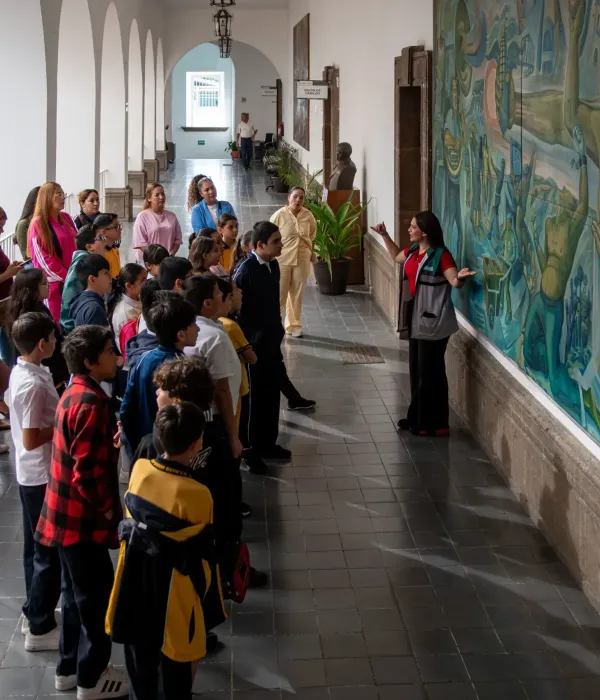 Durante la visita guiada, los estudiantes recorrieron los pasillos del Palacio Municipal, donde recibieron información sobre la historia del edificio desde su fundación hasta la actualidad. Además, conocieron los murales y espacios más representativos del recinto, entre ellos el Salón de Cabildo, donde pudieron aprender sobre el proceso mediante el cual se deliberan y aprueban las decisiones que dan rumbo a la ciudad.
