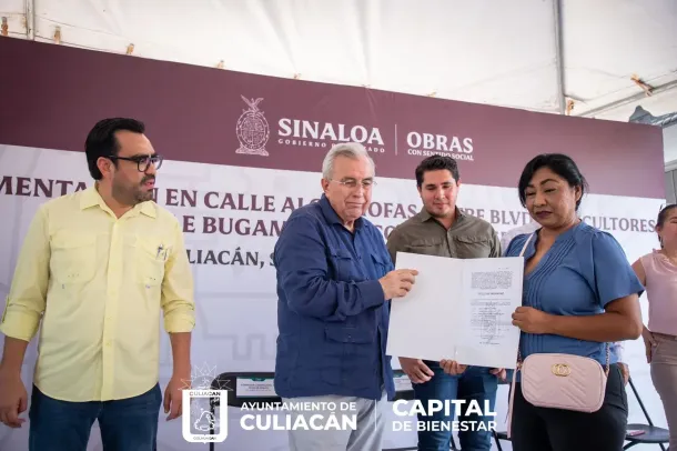 Culiacán, Sin., a 30 de agosto de 2023.- El Gobernador del Estado, Rubén Rocha Moya y el alcalde Juan de Dios Gámez Mendívil, hicieron entrega de 33 títulos de propiedad a los vecinos de cinco colonias de Culiacán, lo que marca un paso significativo hacia la regularización de la tenencia de la tierra y la seguridad jurídica de los residentes.