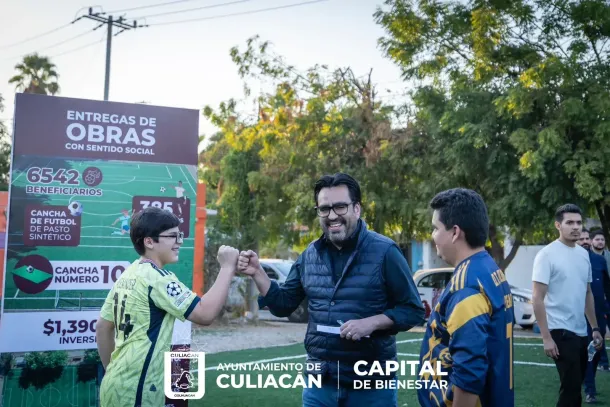 Culiacán, Sin., a 03 de enero de 2025.- En un esfuerzo por fortalecer la infraestructura deportiva y cumplir compromisos con la ciudadanía, el alcalde Juan de Dios Gámez Mendívil inauguró una cancha de pasto sintético en el Fraccionamiento Los Ángeles.