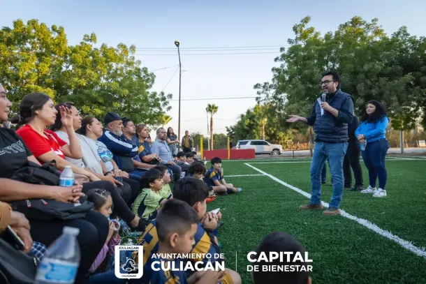 Gámez Mendívil resaltó que decidió entregar personalmente esta cancha cumpliendo el compromiso de regresar que hizo en el mes de octubre cuando inició su construcción, ya que su prioridad es mantener el diálogo directo con la ciudadanía y conocer de primera mano sus necesidades.