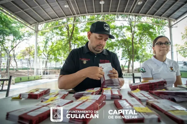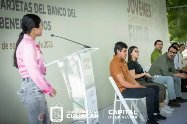 Culiacán, Sin., a 06 de septiembre de 2023.- El alcalde Juan de Dios Gámez Mendívil, acompañó al delegado de Programas para el Bienestar en Sinaloa, Omar Alejandro López Campos, a la entrega de 956 medios de pago para el programa "Jóvenes Construyendo el Futuro".