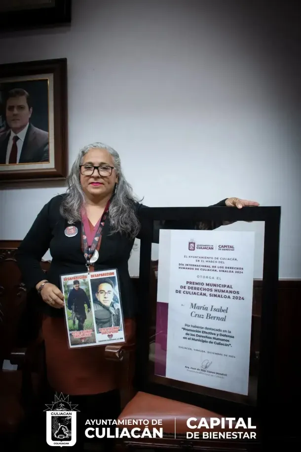 La galardonada María Isabel Cruz, originaria de Oaxaca, fue distinguida por su amplia trayectoria de apoyo solidario a madres de personas desaparecidas, en las tareas de localización. Tras perder a su propio hijo, se ha convertido en una voz destacada que exige justicia a este flagelo social, encabezando campañas y participando activamente en búsquedas de fosas clandestinas, muchas de ellas con resultados positivos.