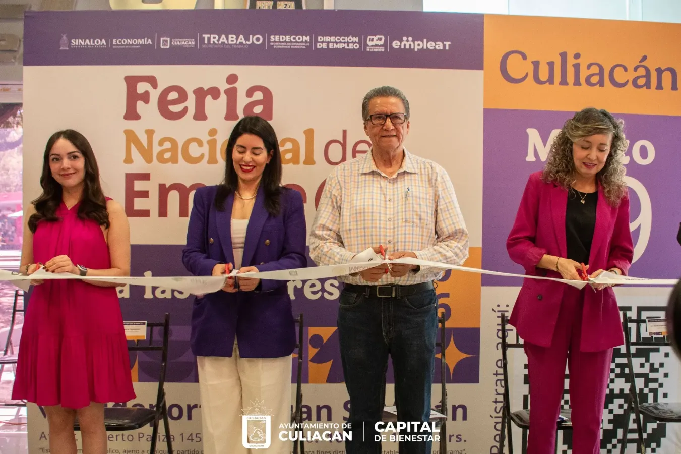 El corte del listón inaugural estuvo a cargo del secretario de Economía del Gobierno del Estado, Feliciano Castro Meléndez, con la presencia de Ana Francis Chiquete, secretaria de las Mujeres; y Marco Antonio Zazueta Zazueta, director del Trabajo y Previsión Social, quienes respaldaron esta iniciativa orientada a fortalecer el bienestar económico de las familias sinaloenses.