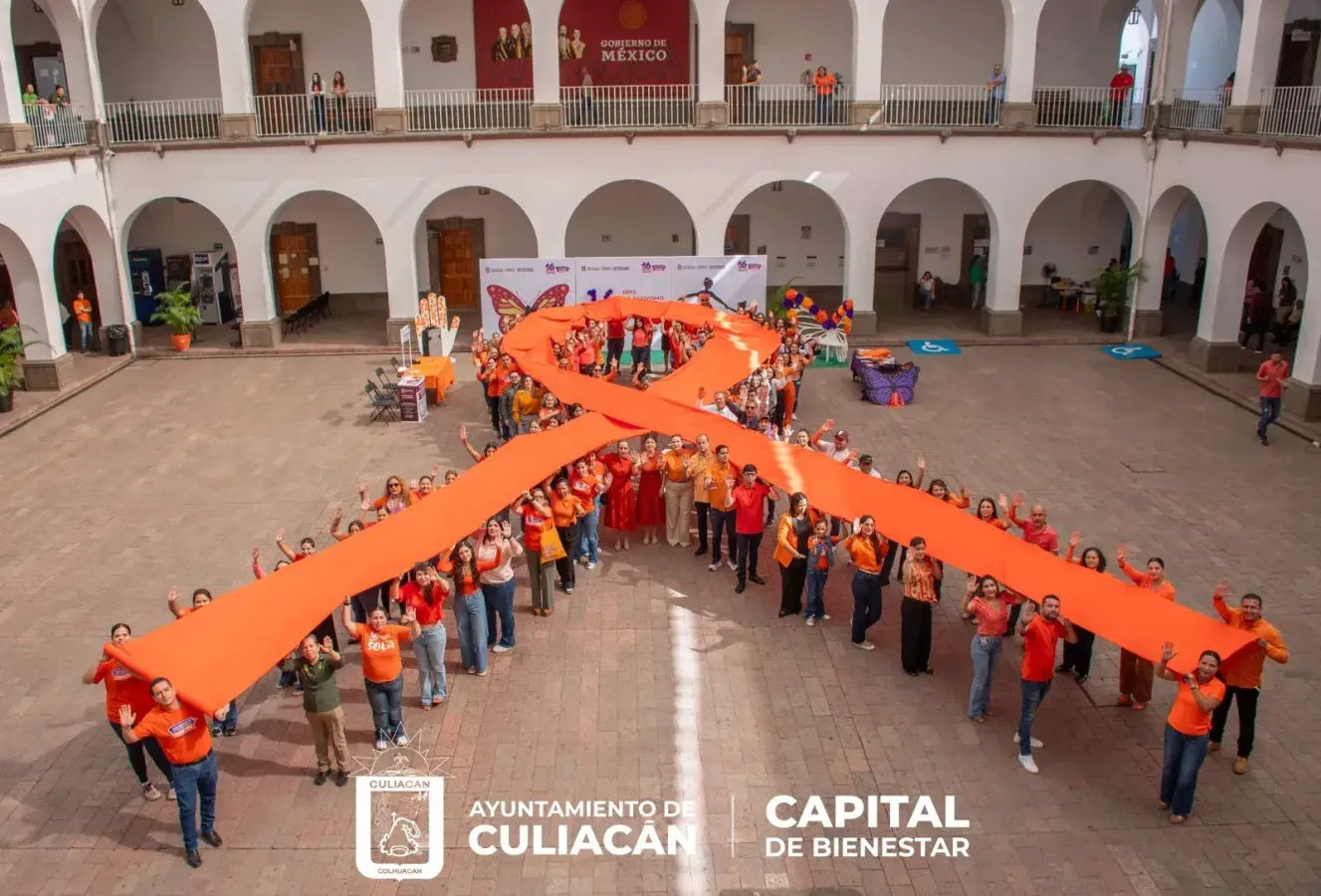 Trabajadoras y trabajadores de la Secretaría de las Mujeres de Culiacán, así como personal de diversas dependencias municipales, participaron portando distintivos conmemorativos en color naranja, reforzando el mensaje de unión y solidaridad ante esta causa.