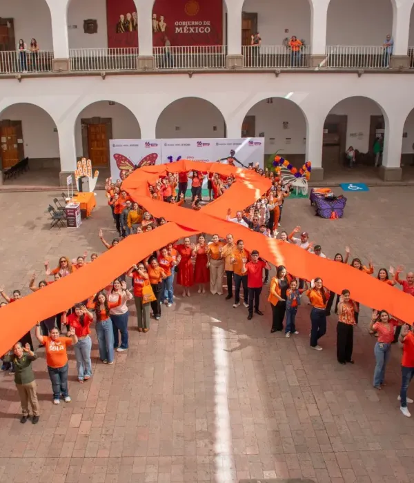 Culiacán, Sin., 25 de noviembre de 2025.- En el marco del plan de actividades de la campaña “16 Días de Activismo: Únete para poner fin a la violencia contra las mujeres”, esta mañana se llevó a cabo la formación de un lazo naranja gigante en el patio del Ayuntamiento de Culiacán, símbolo emblemático del movimiento global para prevenir la violencia contra mujeres, niñas y adolescentes.